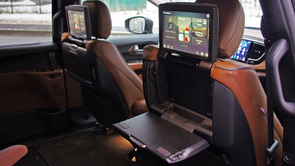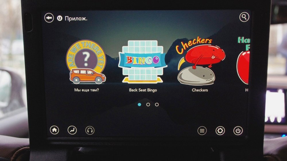 Дабы не портить праздник, отец первым движением достает из спинки откидной столик, а вторым поднимает широкоформатный монитор. Но не простой, на который просто передаются фильмы с Blu-Ray-проигрывателя, а с массой встроенных игр, которые можно дополнить и с внешнего источника, а также дополнительных функций… Такой же есть и в переднем пассажирском кресле.