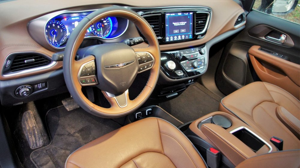 Качельки электрорегулировок кресел традиционные, также при помощи сервоприводов корректируются руль и педали. Типично американский, максимально электрифицированный подход был и в Grand Voyager, только в «Пацифике» «кочерга» АКП на руле уступила место изящной шайбе в британском стиле на выдвинутой в салон части кокпита.