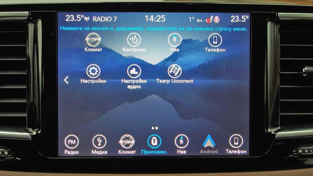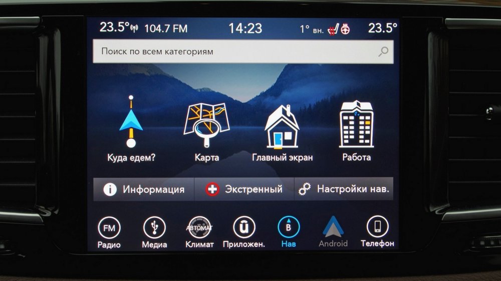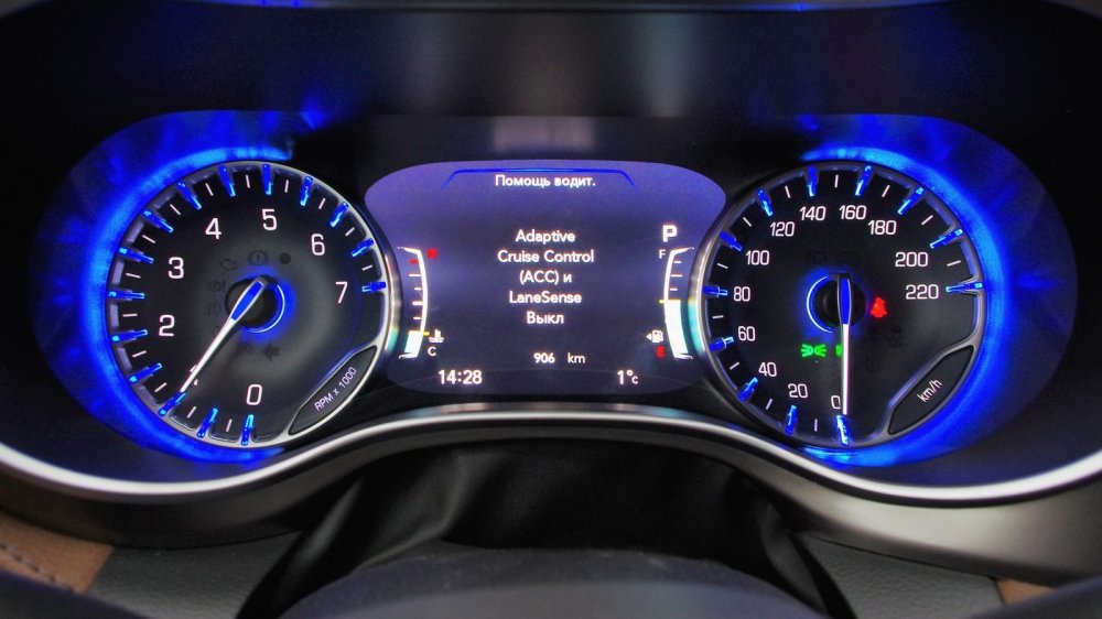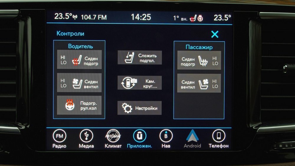 Искать кнопку для запуска его подогрева бессмысленно. Она виртуальная и скрыта в меню настроек на 8,4-дюймовом дисплее мультимедийки Uconnect® Theater, равно как и пиктограммы обогрева и вентиляции сидений. На первый взгляд, необычно, но нечто похожее мы уже видели в том же Infiniti Q50 и прочих американизированных Ниссанах.