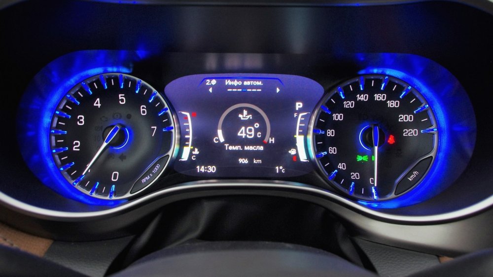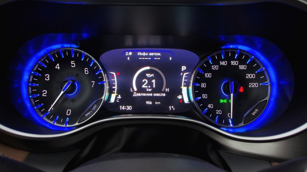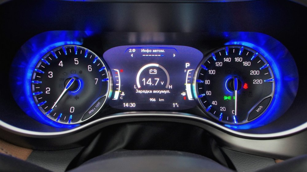 Простым нажатием кнопки на рулевом колесе можно вывести на маршрутный дисплей ряд параметров двигателя, включая давление масла и температуру антифриза, а также цифры, касающиеся состояния бортовой сети и даже коробки передач. Как «молитва» перед взлетом, только проводишь ее без помощника, положив руки на быстро прогреваемый почти по всей длине окружности руль.