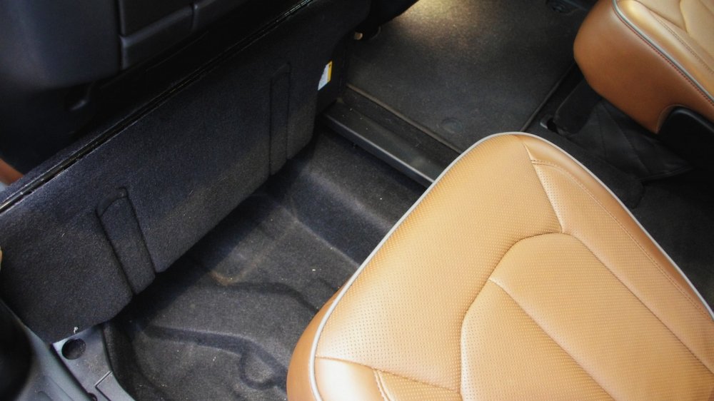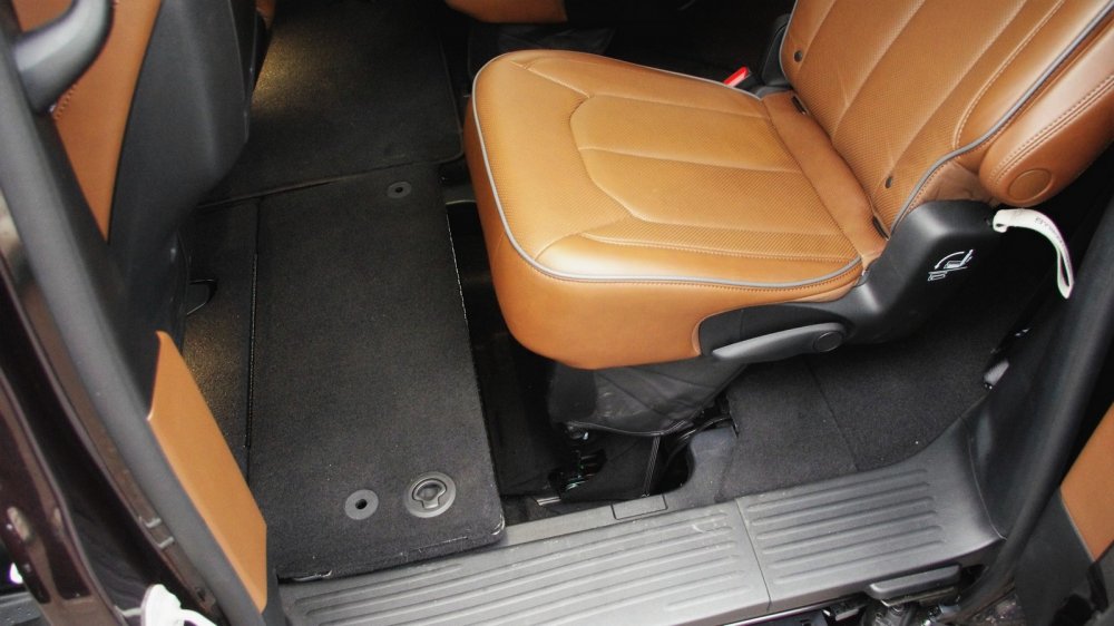 Чуть помрачневший глава семейства нажимает очередную клавишу, сдвигая водительское кресло вперед, приподнимает кусок пола перед следующим сиденьем и, потянув за лямку его спинки, превращает сидушку в подобие бутерброда. Еще одно движение – и он оказывается вровень с полом.