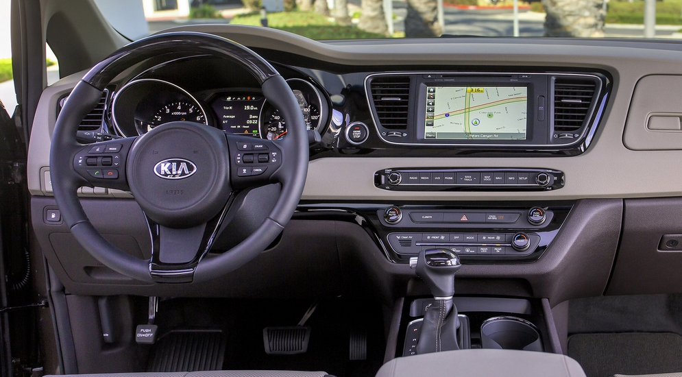 Еще один приятный сюрприз — начальная цена в 26 400 долларов, приблизительно эквивалентная нашим двум с половиной миллионам (не по официальному курсу, а по сравнению с другими моделями). Базовая комплектация Седоны в основном аналогична крайслеровской, а подстаканников — целых 12 штук на семерых седоков. Восьмиместная компоновка салона — уже за доплату, как и кожаная отделка интерьера, 18- или 19-дюймовые колеса, панорамная крыша, камеры кругового обзора, автопарковщик, климат-контроль с ионизатором воздуха и вышеупомянутая волшебная пятая дверь. А вот меломанам Sedona вряд ли подойдет: премиальная аудиосистема Infinity (не путать с автомобильным брендом Infiniti) имеет всего-то восемь динамиков.
