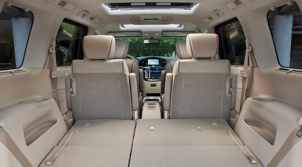 Кстати, об Infiniti: автомобили именно этой марки сильно напоминает внутренний мир минивэна Nissan Quest четвертого поколения, представленного в 2011 году. Ведь платформу он делит как с несколькими ниссановскими моделями (Teana, Murano, Pathfinder), так и с кроссоверами Infiniti QX60 и JX, — не располагая, впрочем, при этом полным приводом, как и большинство конкурентов. Главное техническое отличие Квеста от них — коробка-вариатор Xtronic вместо классического «автомата», которую инженеры Ниссана давно и довольно счастливо «поженили» с мощными шестицилиндровыми двигателями известного семейства VQ35. В числе функциональных достоинств — самый «вагонный» дизайн с высокой крышей (Quest на 8 см выше «Одиссея»), прибавляющий пространства в салоне, но вряд ли способствующий визуальному изяществу. Хотя, с другой стороны, и Mercedes V-класса, и Volkswagen T6 еще заметно выше, так что у нас нет морального права попрекать излишней «автобусностью» ни одного из фигурантов обзора.