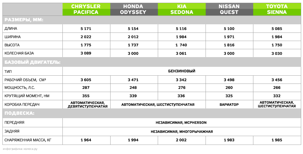 Тему для очередного обзора нам задали два недавно испытанных минивэна — Volkswagen T6 и Mercedes-Benz V-класса. Правда, не такие уж они и «мини», при габаритной длине за пять метров и ценах, автоматически переадресовывающих нас в премиум-сегмент, — и лишь конкуренция в этой нише нашего рынка действительно очень невелика. То ли дело Америка, где и моделей такого калибра побольше, и главной их целевой аудиторией являются не столько «люди в черном», сколько многодетные домохозяйки. Для них это своего рода аналоги нашего Lada Largus с тремя рядами сидений, только чуть покрупнее, оснащенные моторами-«шестерками» объемом не менее трех литров, разумеется, в блоке с коробкой-«автоматом». И наиболее выдающимся из таковых на сегодняшний день обладает...