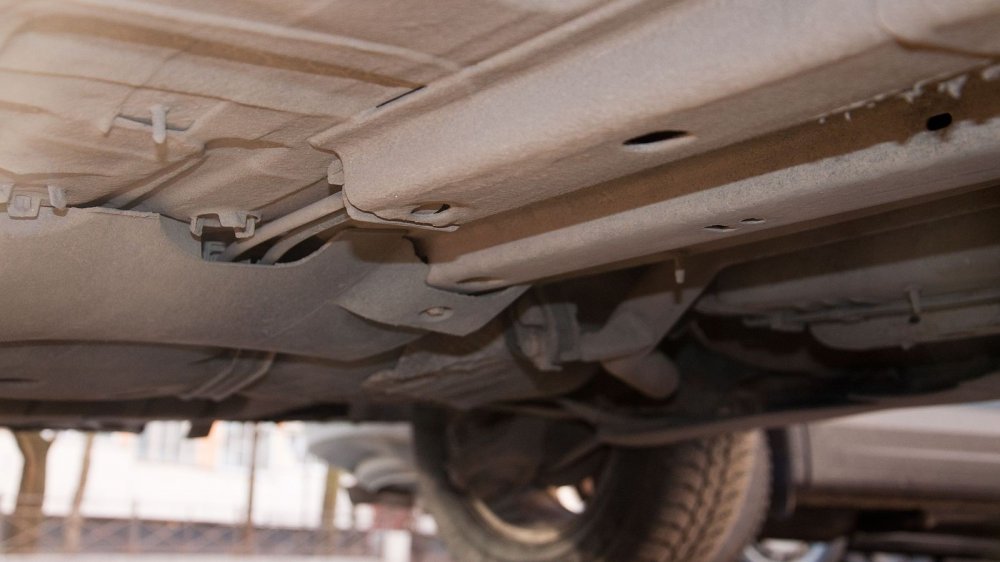 Пластика на днище довольно много: в задней части он обычно поломан камнями и настоятельно рекомендуется его все же менять, потому что накладки защищают топливный фильтр и тормозные трубки. Последнее, на что стоит обратить внимание на подъемнике, это выхлопная система, которая в задней части сгнивает уже через 6-8 лет, и к текущему моменту, скорее всего, уже заменена или в печальном состоянии.