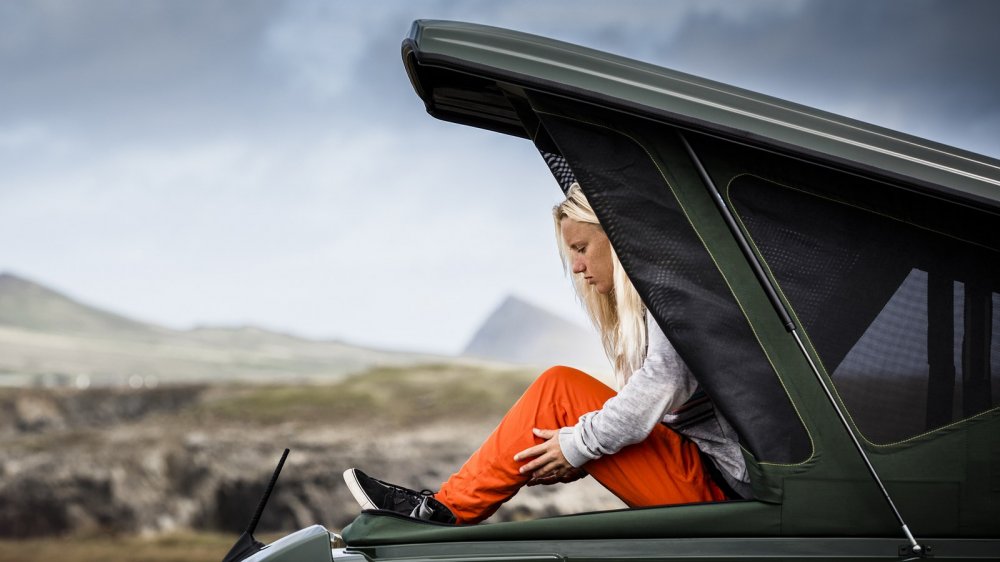 Концепт предусматривает ночлег четырех человек попарно. Двое могут расположиться на раскладном заднем сиденье, образующем ровную поверхность – положили матрас и получили кровать. Еще двое могут спать на крыше под непромокаемым тентом.