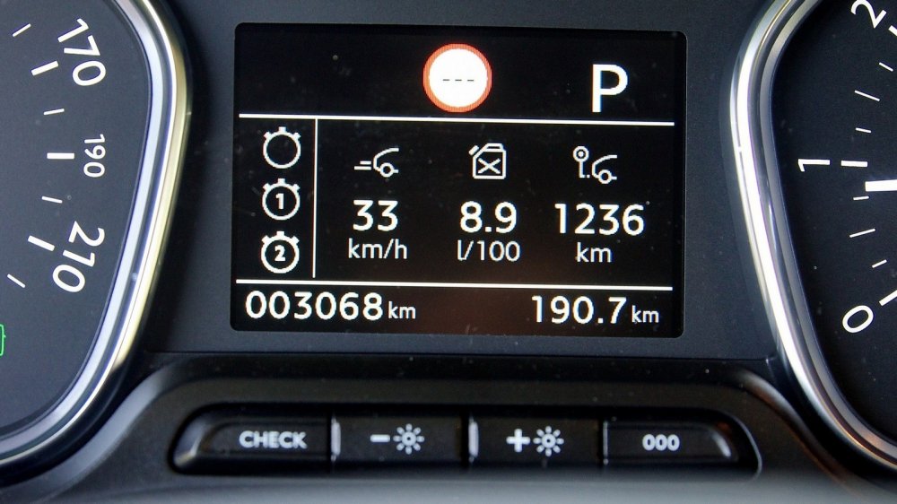 А еще в SpaceTourer совершенно не чувствуется скорость. Что сорок километров в час, что сто сорок — ощущения одни и те же… А тут еще спидометр размечен непривычно, с оцифровкой по нечетным десяткам. Хорошо, что на отлично читающийся (благодаря «альбомной» ориентации) информационный дисплей на щитке приборов можно вывести значение скорости в цифровом виде. Но тут тоже есть небольшая эргономическая проблема. Странички дисплея листаются при помощи барабанчика на левой спице руля. В принципе — очень удобно, но при рулении этот барабанчик легко задеть, и страница с цифровым спидометром сменится страницей со средним расходом топлива. Вернуть ее на место — одна секунда, но и пропустить момент, когда ты выйдешь за границы действующего ограничения, тоже проще простого. Вообще-то для SpaceTourer предусмотрена такая весьма уважаемая мной опция как проекционный дисплей прямого визирования. С ним контролировать скорость было бы еще проще, но увы — на тестовом автомобиле его не было.