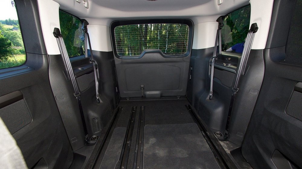 И диванчики, и кресла можно независимо двигать взад-вперед по проложенным в полу направляющим. Если пассажиров не более пяти, то на втором ряду их встретит воистину королевский комфорт: хочешь, вытяни ноги, хочешь, закинь ногу на ногу… Припечет солнышко — можно поднять на окнах шторки-сеточки. Решишь в дороге кино посмотреть — в спинках передних сидений есть откидной столик с подстаканниками, вполне способный выдержать вес ноутбука. Проблем с его подключением не будет — под правым передним сиденьем есть штатная розетка на 220 вольт. Но даже если вам нужно перевезти семь пассажиров, им не придется слишком уж тесниться. Конечно, второй ряд нужно будет сдвинуть вперед, и ноги уже не вытянешь, но и особого неудобства пассажиры испытывать не будут.