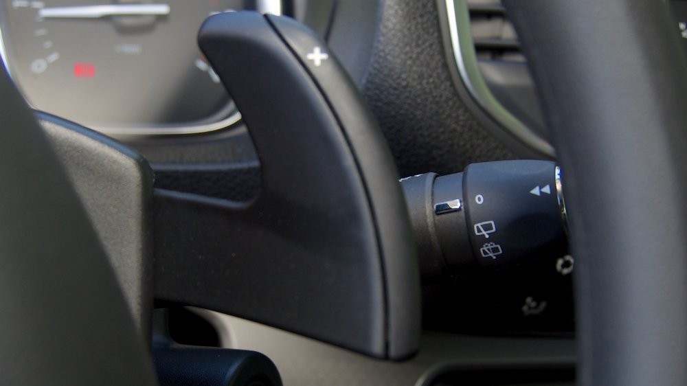 Зато есть круиз-контроль и ограничитель скорости. Управление этими системами вынесено на отдельный подрулевой рычажок слева от колонки. С ним лучше ознакомиться до начала поездки, потому что действовать придется на ощупь: мало того, что рычажок полностью скрыт из вида спицами руля, так еще и кнопки, которыми ты добавляешь или убавляешь скорость, расположены с его задней стороны! Но когда освоишь эту нехитрую науку, жизнь становится много проще. Выставил ненаказуемые 78 км/час — и можешь смело давить на педаль.