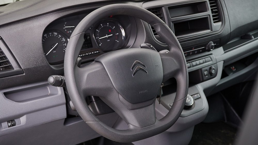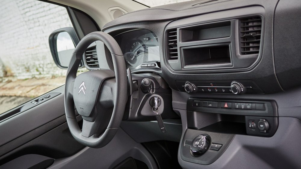 В остальном салон не заставляет зацепиться взглядом за что-то, пока дело не доходит до приборной панели. Общая архитектура не лишена эстетичности, но проста и функциональна: главное здесь – число карманов, отсеков и ниш разного размера. Несомненно добавляя удобства, они однако изрядно «захламляют» салон, будучи заполненными: большинство из них не имеет крышек, и бумажки, провода и рабочий скарб будут нещадно торчать отовсюду, создавая ощущение неряшливости. Это, впрочем, далеко не личная претензия к Jumpy: этим грешат почти все коммерческие фургоны.