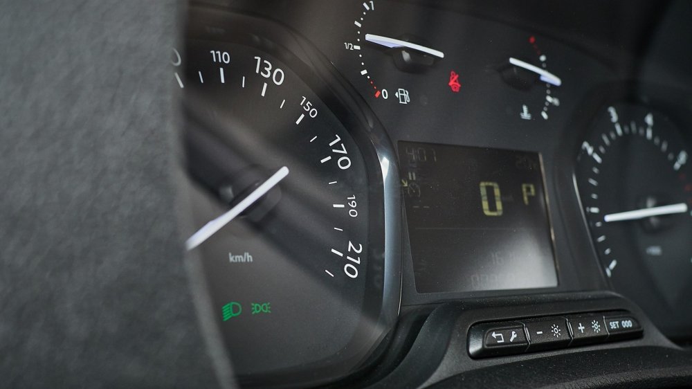 А вот приборная панель – это еще один маленький «островок Франции» в интерьере. Глядя на «пентагоны» приборов, вспоминаешь добрым словом французских дизайнеров, а монохромный экранчик между ними с белыми цифрами на черном фоне усиливает симпатию. Указатели уровня топлива и температуры охлаждающей жидкости при этом остались стрелочными – и это тоже кажется мне куда более подходящим решением, чем «гаснущие черточки».