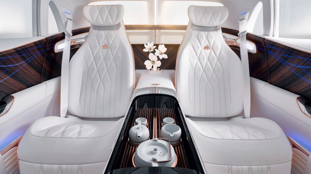 Во-первых, автомобиль, заявленный как внедорожник, получил трехобъемный “седанный” кузов с характерно выраженным багажником. Во-вторых, в интерьере можно встретить не только дорогую кожу и эбеновое дерево, но и розовое золото, и…чайный набор – ведь мы помним, что речь идет о рынке Китая. Техническая же часть следует популярным современным трендам: Mercedes-Maybach – чистый электромобиль с четырьмя моторами суммарной мощностью в 750 л.с. Заявленный запас хода – 500 километров. Но, пожалуй, самое интересное в автомобиле то, что он построен на новой мерседесовской платформе MHA и является предвестником кроссовера GLS следующего поколения.