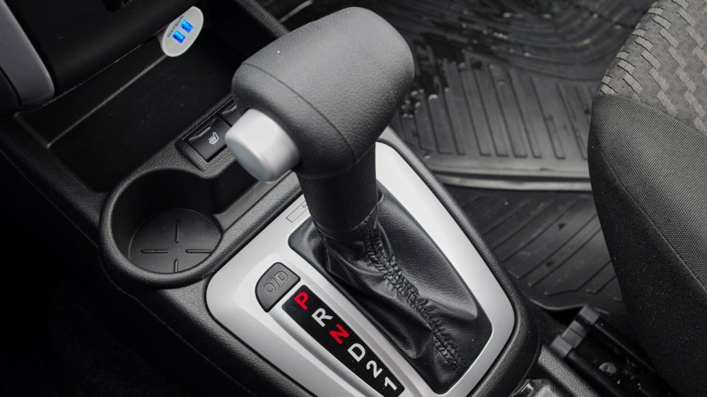На поверку пластик на селекторе «автомата» оказался куда более приятным, чем жесткий и скользкий на руле, и даже слегка напоминающим каучук. Правда, перевести коробку в «драйв» на ощупь с первой попытки у меня не вышло: промазал, загнав шток в положение «1». Есть еще и «2», а также кнопка O/D или овердрайв. Назначение их примерно одинаковое: запрет перехода на повышенные передачи. На современных АКПП таких режимов не найти – у большинства из них есть функция ручного переключения. Но для торможения передачей или быстрого разгона и эти сгодятся.