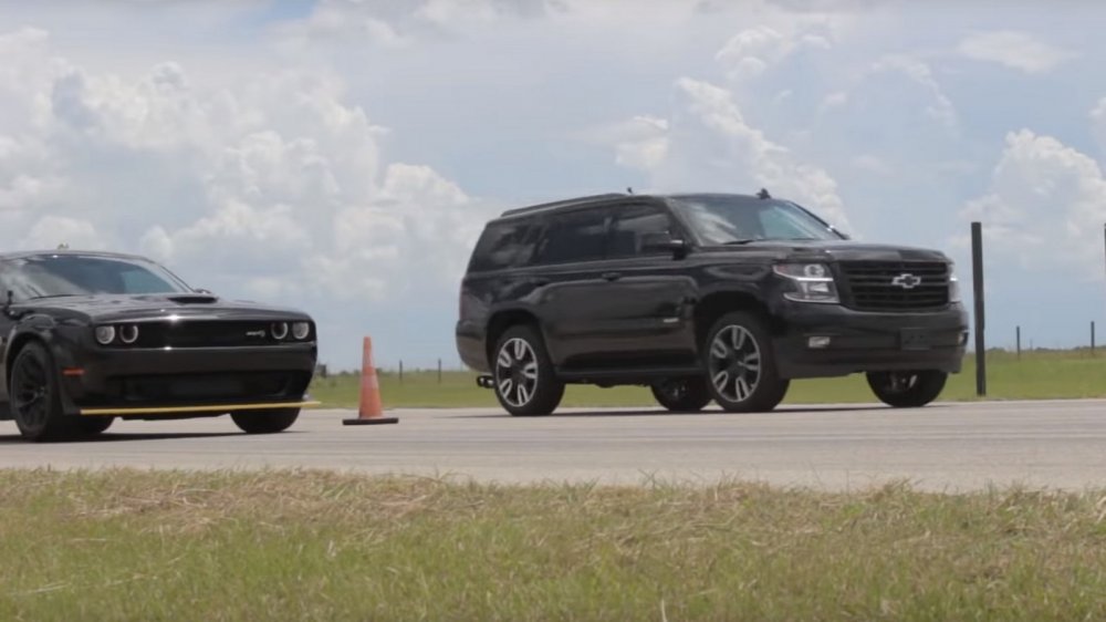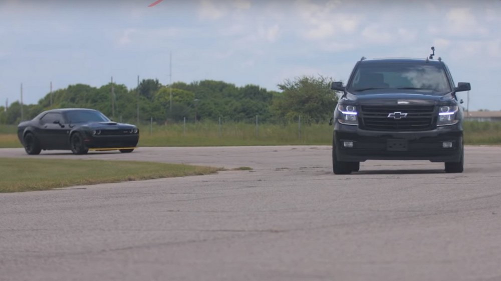 Американское тюнинг-ателье Hennessey Performance выложило новое видео с баттлом модернизированного внедорожника Chevrolet Tahoe и стокового Dodge Challenger SRT Hellcat с ширококузовным обвесом.