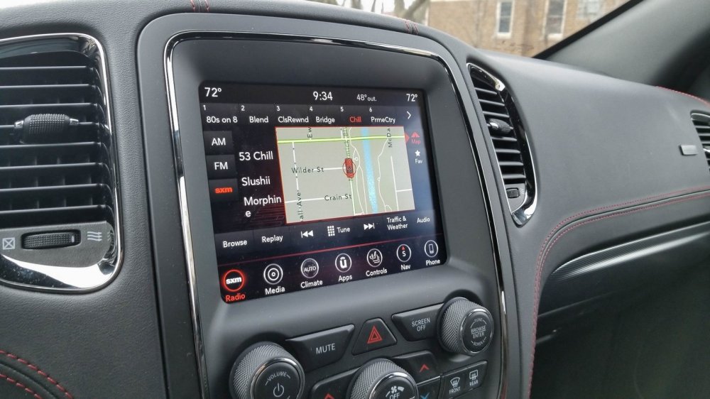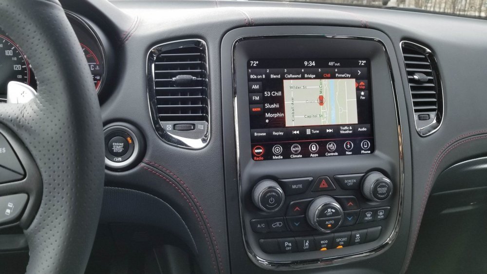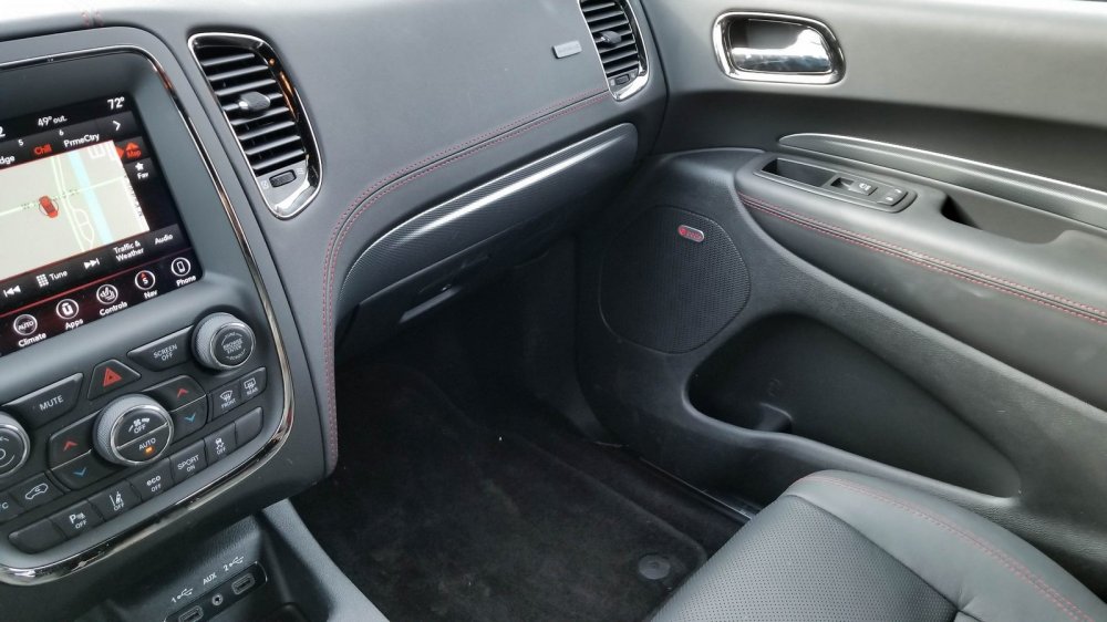 Приборная панель нарядная, но ваше внимание все равно будет больше приковано к тачскрину мультимедийки с фирменным названием Uconnect, которая тоже поддерживает Durango «на уровне лучших представителей класса». Здесь как минимум 7 дюймов диагонали с обязательными Apple CarPlay и Android Auto, Bluetooth и спутниковое радио, а если вы доплатите, то получите 8,4 дюйма от угла до угла и штатную навигацию. Кстати, чтобы угадать, какой бренд красуется на динамиках аудиосистемы, вам должно быть лет шестнадцать. «Старикам» невдомек, что существуют альтернативы H&K, B&O, Meridian или, на худой конец, JBL, а уж предположить, что это может быть Beats – и вовсе непосильная задача. Зато угадать, каким получился результат, сможет даже глухой от рождения человек: характерные вибрации говорят сами за себя. Басы здесь мощные и густые, «верха» слышны, а середина присутствует на интуитивном уровне – но если подобрать правильный плейлист или покопаться в настройках, то музыку сможет послушать с удовольствием почти каждый.