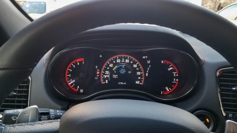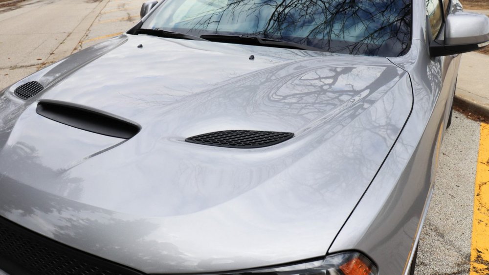 Тот базовый прокатный Durango из прошлого явно пропускал дни ног и подрабатывал охранником в супермаркете. «Начальные» колеса под этим массивным телом выглядели жалко, а размер и три ряда сидений казались надуманным преимуществом при наличии под капотом «рахитного» 290-сильного V6 и скудного салона. Этот же, сегодняшний, ощерился черной решеткой радиатора, как у старшего SRT, и разверз капот, подчеркивая, что под ним есть мотор объема и конфигурации, за которые не стыдно. Опираясь на 20-дюймовые колеса, обутые в слегка неуместную всесезонную Bridgestone Ecopia, он снимает все вопросы относительно того, как произвести правильное первое впечатление даже в скучном сером цвете.