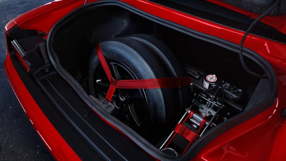Из инструментов «ящик» предлагает гидравлический домкрат, аккумуляторный гайковерт с зарядкой, динамометрический ключ, датчик давления в шинах, защитное покрытие на крыло и сумка для инструментов. Имеется также пенопластовый кейс, вставляющийся в багажник Dodge Challenger SRT Demon с пазами для безопасного размещения передних гоночных колес и инструментов.
