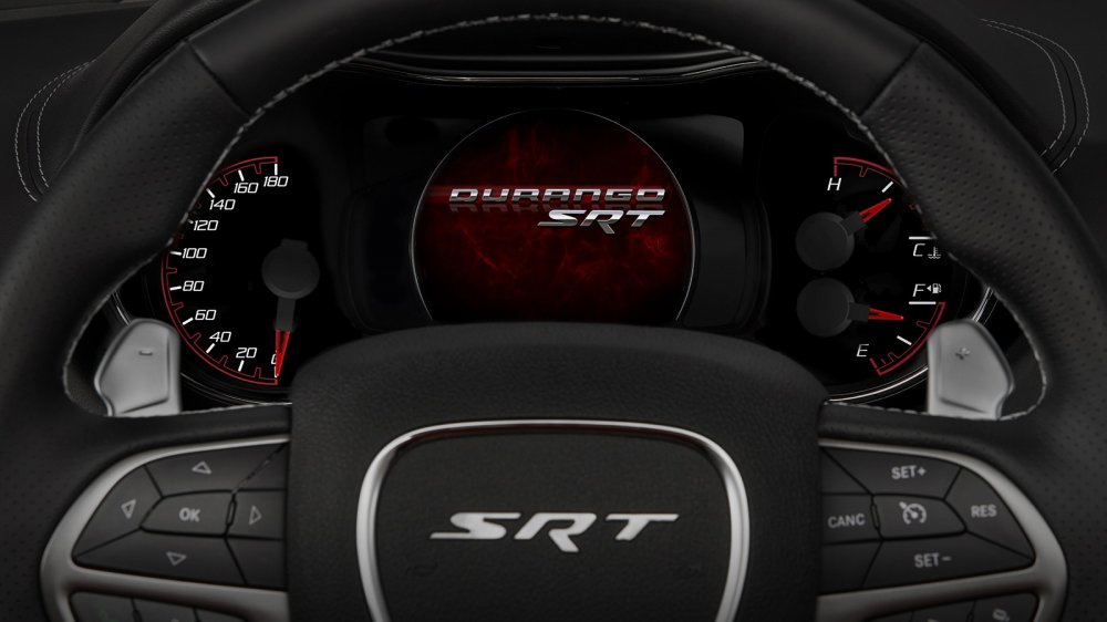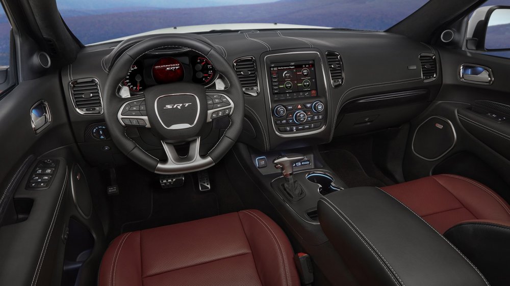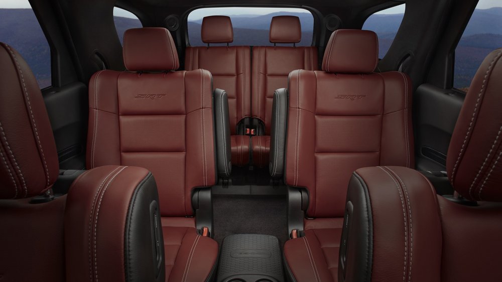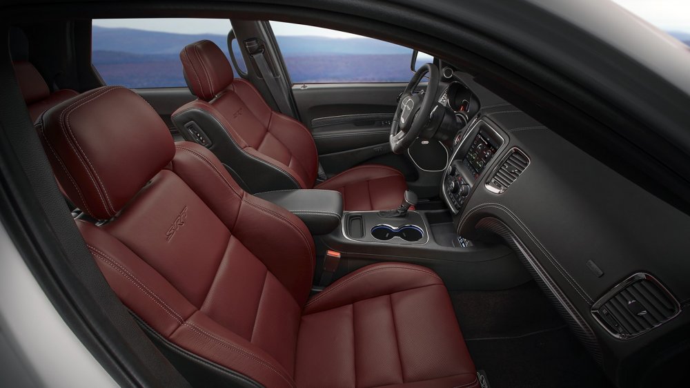 Салон нового Durango SRT имеет торпедо, затянутое в кожу с двойной прострочкой из серебристой нити. Пол устлан велюровыми ковриками с вышитой надписью "SRT", сиденья тоже выполнены из кожи — комбинации обычной и Nappa, впервые для Durango предложена отделка при помощи декоративных элементов из карбона (появится в продаже чуть позднее).