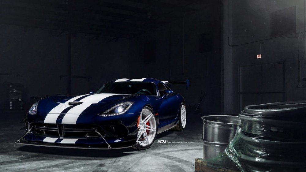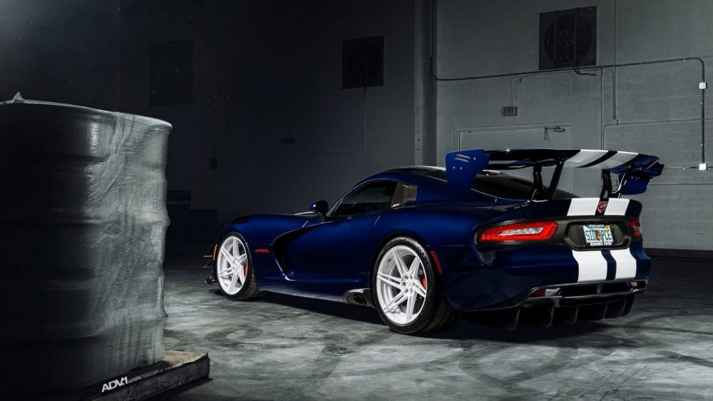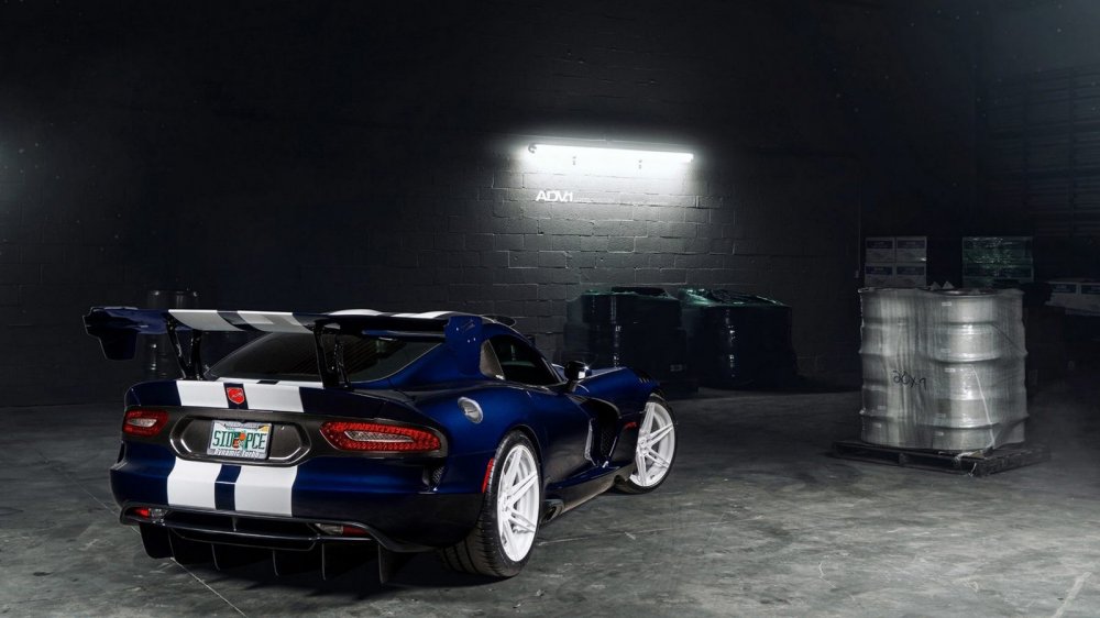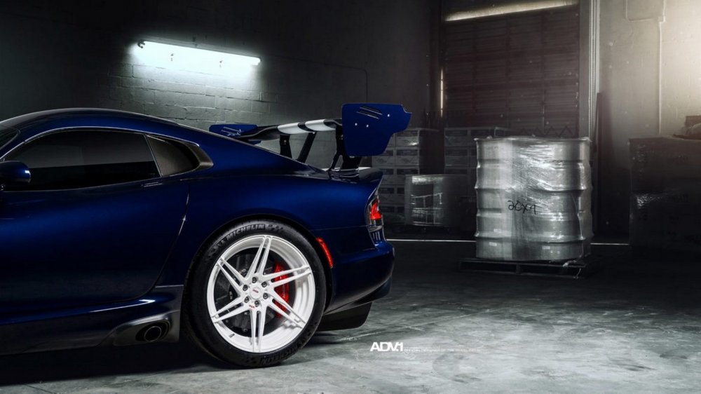 Чтобы еще больше подчеркнуть истинно-спортивный характер американского маслкара Dodge Viper ACR, его укомплектовали набором эксклюзивных колесных дисков. Автомобиль оснастили легкими, но жесткими и прочными 20-дюймовыми колесами ADV06R M.V2 Competition Speс. Белый цвет новой «обувки» гармонично сочетается с полосами на кузове.