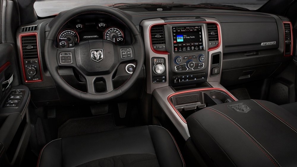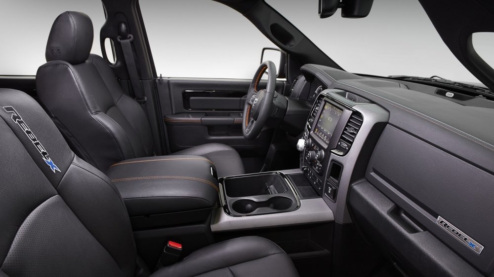 Центральный тоннель вместил в себя интегрированный держатель для планшета. Последние штрихи – тиснение красной и серебристой нитями, а также фирменные логотипы Rebel на перчаточном ящике, панели приборов, ковриках и сиденьях. В серийное производство пикап запустили в конце 2015 года.