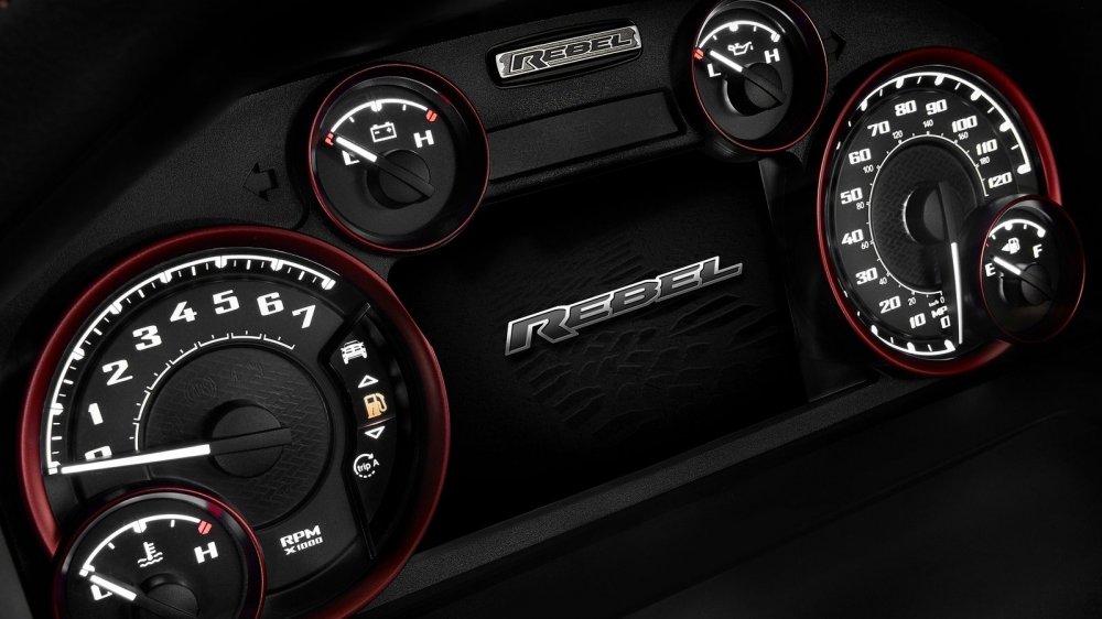 Из всего разнообразия кабин и размеров Rebel выпускается только в одном: четырехдверная кабина Crew Cab и бортовая платформа 1 500-фунтовой версии. Среди внешних отличий – новая решетка радиатора, алюминиевый капот с вентиляционными отверстиями, а также светодиодные противотуманки, причем оптика получила затемненные окантовки.