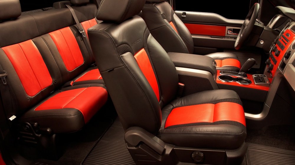 Новый Raptor отличается от обычного F-150 расширенной на 150 мм колеей с развитыми арками и внедорожными 17-дюймовыми шинами BF Goodrich, а также усиленным передним бампером и решеткой радиатора с крупной надписью Ford. В салоне – потолочная консоль, к которой можно подключить дополнительное оборудование – компрессор, блок фар на крыше и другое, а также спортивные сиденья с развитой боковой поддержкой.