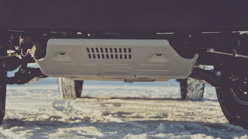 От обычных Colorado он отличается крупноячеистой решеткой радиатора, усиленным передним бампером, капотом с черной вставкой и расширителями арок, ведь колея машины увеличилась сразу на 90 мм! Днище прикрыли алюминиевой защитой картера двигателя и раздатки, а дополнительную защиту обеспечивают силовые пороги.