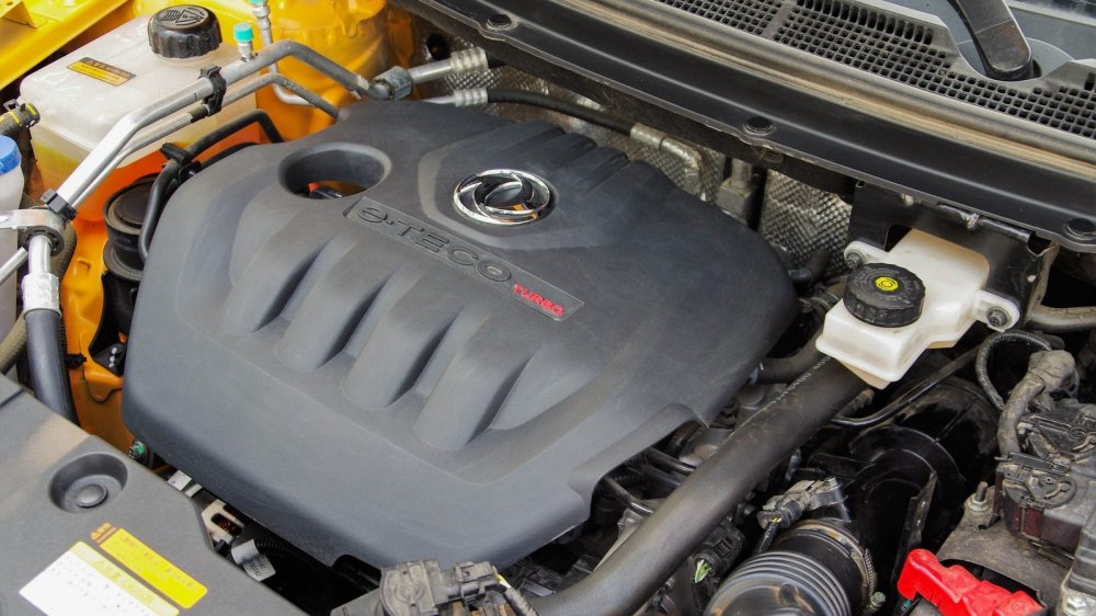 С осмотром все, запускаю двигатель кнопочкой «Start», которая почему-то голубого цвета. Мотор здесь, кстати, тоже с французскими корнями, но не от PSA, а от Renault-Nissan: 1,4 TCe – рядная "четвёрка" H4Jt, которая ранее ставилась на третье поколение Megane, но достаточно быстро сошла со сцены. На Рено мотор выдавал 130 л.с., на «китайце» отдачу подняли до 140. Турбокомпрессор тут GTC12 от Garrett, коробка — "робот" с двумя сцеплениями DCT6 от Getrag.