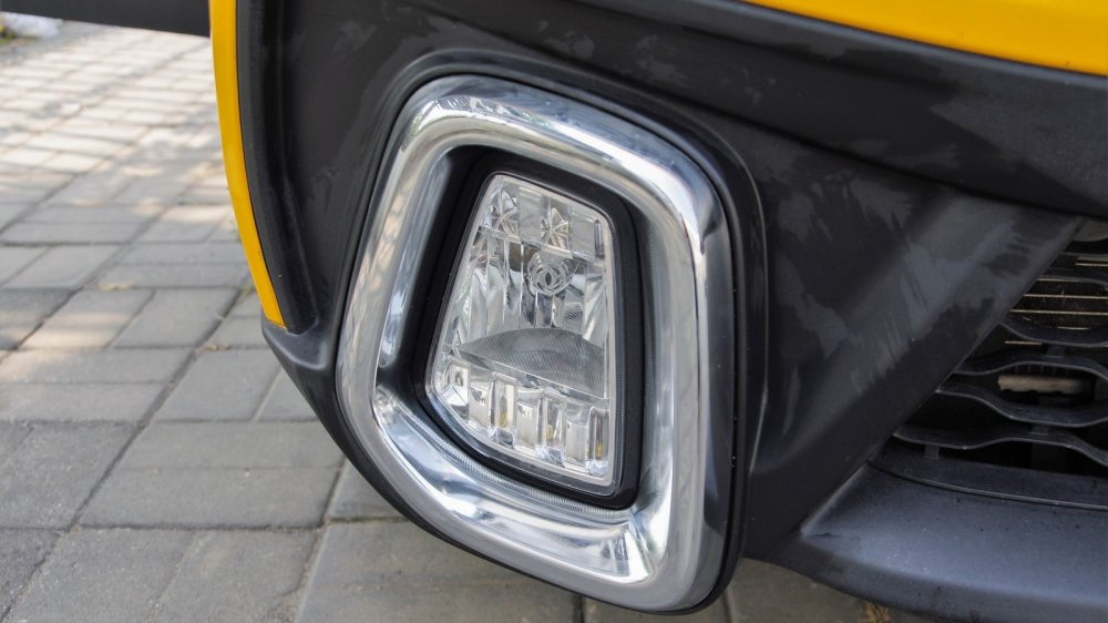 Полностью светодиодной оптики у машины нет – не тот класс. Фары самые обычные, галогенные, хоть с со LED ходовыми огнями (вписанными вполне органично). Элемент на любителя – размашистые вертикально стоящие противотуманки. Если злоупотреблять грейдером – могут и пострадать от летящих камней. Правда, из внедорожного у AX4 только имидж.