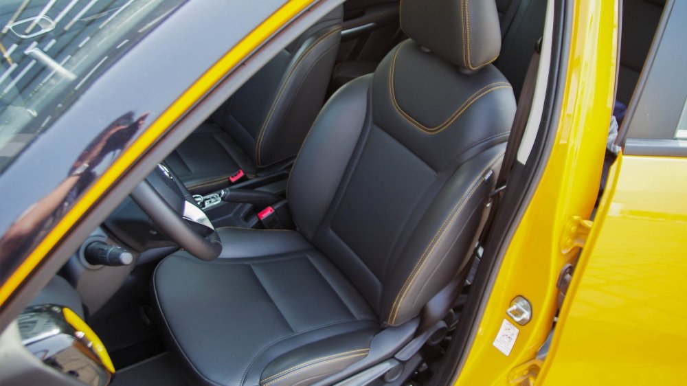 За рулем при моем немалом росте оказывается очень комфортно. Самое главное – совершенно не тесно. Качественные, обтянутые простроченной эко-кожей кресла — "в облипку", подушка нормальной длины, регулировки по высоте и наклону спинки посредством лапок.