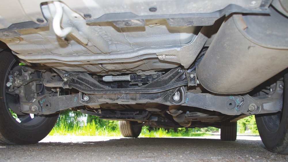 Тем не менее, дорожный просвет в 190 мм говорит и о некой универсальности, которая действительно присутствует. Выезд на проселок для этого кроссовера безопасен при отсутствии глубокой колейности или торчащих булыжников. Экскурс под днище обнаруживает лишь пластмассовую защиту картера, которую для постоянного загородного использования придется усиливать.