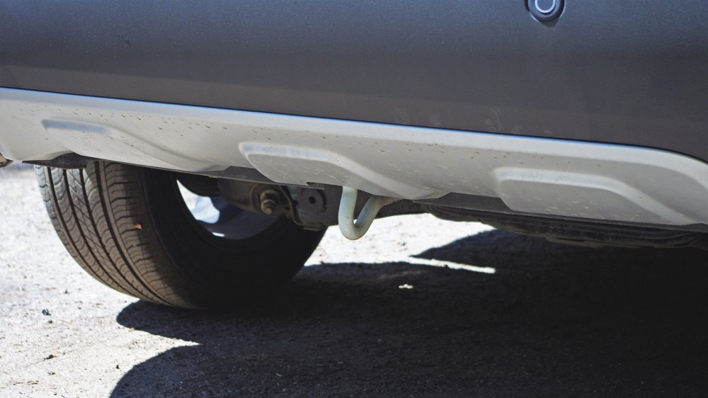 Но дело даже не в этом. Я не мог отделаться от мысли, что передо мной полноценный современный автомобиль, без всяких скидок на происхождение и «будущий рост». Мимолетного взгляда хватило, чтобы зафиксировать качественную окраску, ровные зазоры панелей, светодиодную ходовую и заднюю оптику, парктроники, камеру заднего вида, а еще дисковые тормоза и пару оконечников выхлопных труб, левый из которых — для симметрии. Улыбку вызвала лишь огромная буксировочная петля сзади по центру, приваренная к днищу несущего кузова, но, похоже, прочно.