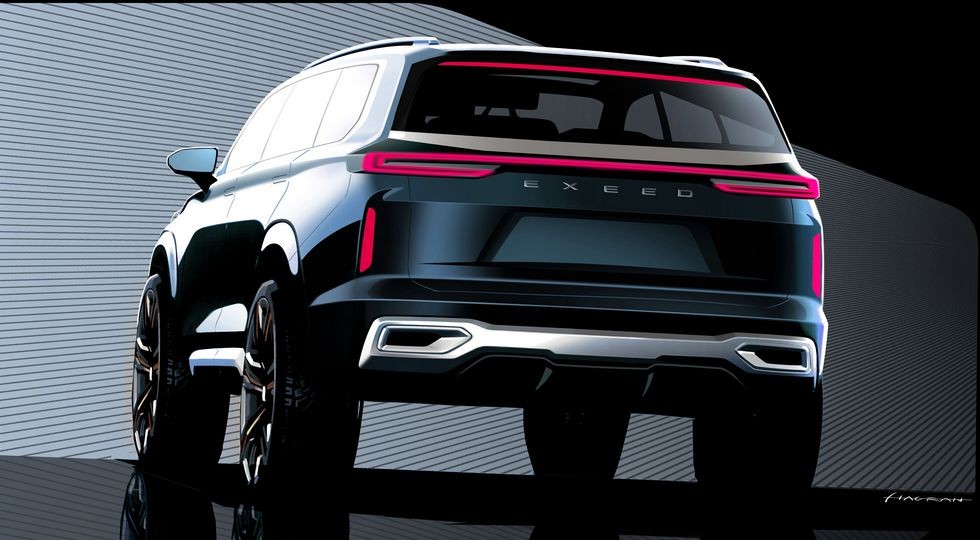 Опубликованы официальные эскизы большого кроссовера Exeed VX. Полноценная презентация новинки пройдет на выставке в Гуанчжоу, которая откроется на следующей неделе.