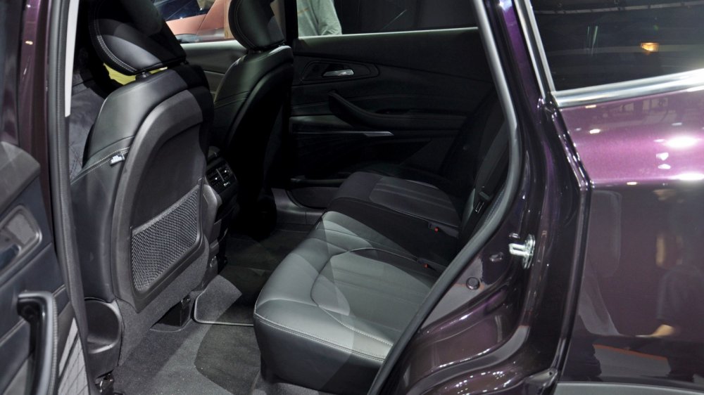 На мой взгляд, однотонный и тёмный интерьер показанного кроссовера выглядит несколько скучным. Интересно было бы посмотреть его в других расцветках. Тут со сдержанностью вышел перебор. Зато простора тут действительно много! Причём и на заднем ряду тоже. Не радует только одно: даже на этом экземпляре журналисты смогли сразу покоцать обивку дверей и заляпать весь «рояльный лак»… А ведь они всего лишь брались за ручку внутри салона! Кстати, эта ручка, растущая из подлокотника и обшитая «экокожей», вызывает серьёзные опасения: качество материалов, судя по всему, всё-таки не слишком высокое. Впрочем, оставим судить времени.