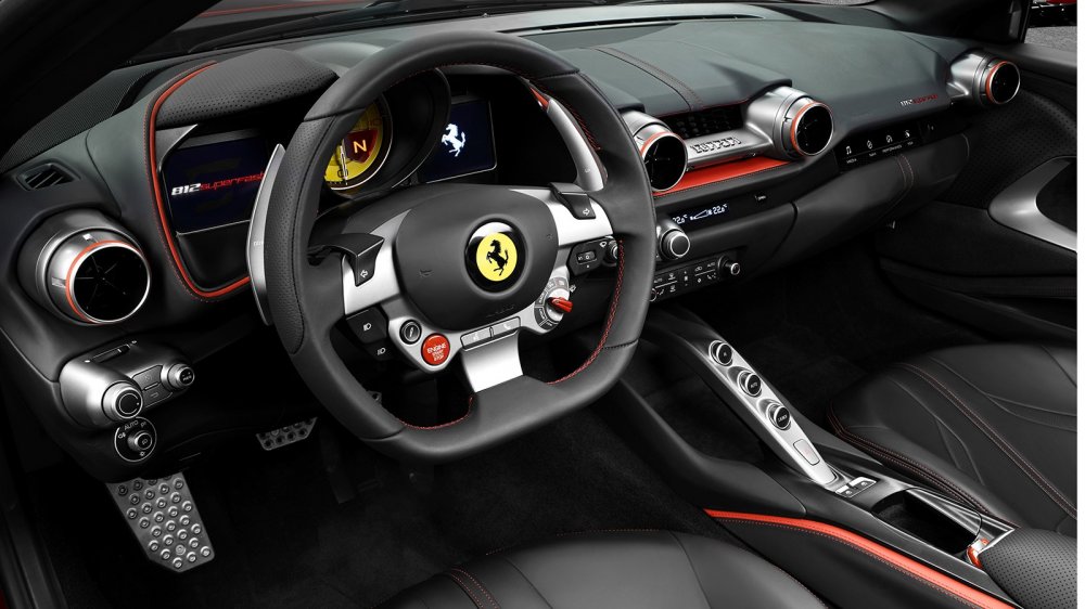 Дизайн кабины "был пересмотрен под стать экстремальным характеристикам". Причём 800-сильный мотор не заставил отказываться от комфорта, поэтому кататься на Ferrari 812 Superfast можно с кондиционером и последним поколением информационно-развлекательного комплекса.