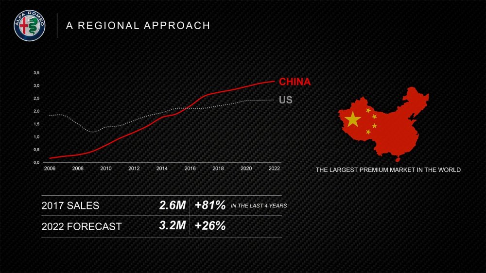 А вот Alfa Romeo хоть и обещает покорение новых горизонтов, в числе которых США и Китай, но кое в чем уже не так амбициозна, как 4 года назад: согласно объявленному плану суммарные мировые продажи должны вырасти уже не до 700, а до 400 тысяч штук в год. В остальном итальянцы потрясают все теми же знаменами: упор на спортивность гладко сочетается с расширением кроссоверной линейки, в которой к 2022 году должно появиться еще 2 модели – компактная и гибридная.