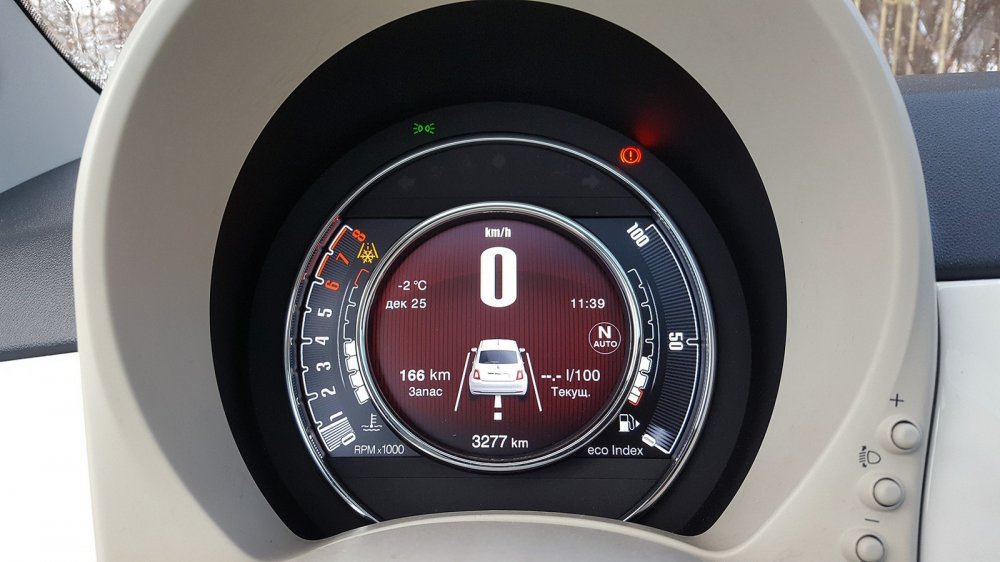Главный недостаток по внутрисалонному опционалу Fiat 500 – отсутствие у гостя из теплой страны «теплого пакета». Увы, подогрев сидений, и уж тем более лобового стекла, нельзя получить даже за доплату… Обидно, но в машину стоимостью от миллиона рублей придется покупать электрогрелки-«емели». Хотя печка, надо сказать, весьма эффективна и достаточно быстро просушивает и прогревает салон.