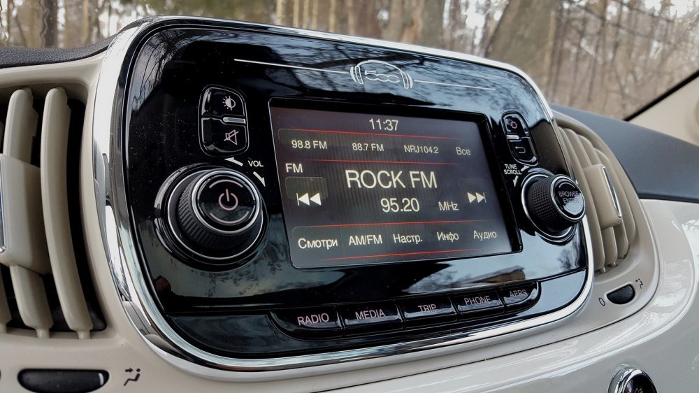 Дисплей мультимедийной системы Uconnect – всего лишь пятидюймовый, у многих смартфонов сегодня побольше. Да еще и не емкостный, а архаично-резистивный, реагирующий не на касание, а на нажатие! Возможность ткнуть в него ногтем, уголком мобильника или тубусом губной помады может понравиться водительницам пятисотого, хотя крупные кнопки управления на руле все же удобнее.