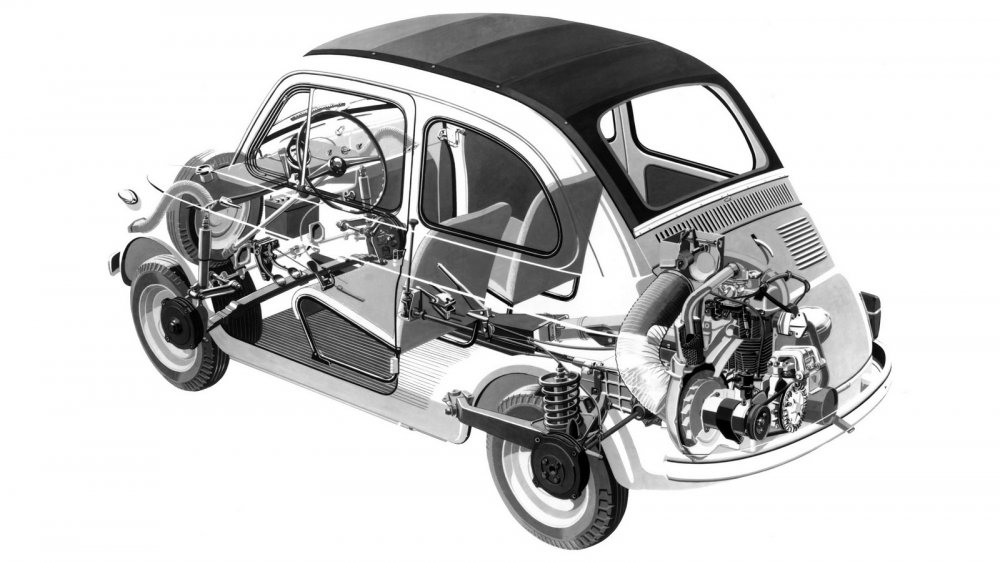 Следующее поколение «мышонка» появилось в 1957 году и называлось Fiat Nuovo 500 – «новый пятисотый». Поменялся внешний вид, но не концепция – машина осталась столь же крошечной, по большому счету двухместной. Но, как ни странно, «новый 500-й» в сравнении с предшественником довоенно-послевоенного периода выглядел еще большим «эрзац-автомобилем», хотя по логике должно было бы быть наоборот… Двигатель сзади, а не спереди, три цилиндра, а не полноценные четыре, воздушное охлаждение против водяного… Однако машина оказалась столь же успешна, как и предшественница: её выпускали и продавали по всей Европе долгие 18 лет до 1975 года включительно, и ее тираж превысил четыре миллиона штук.