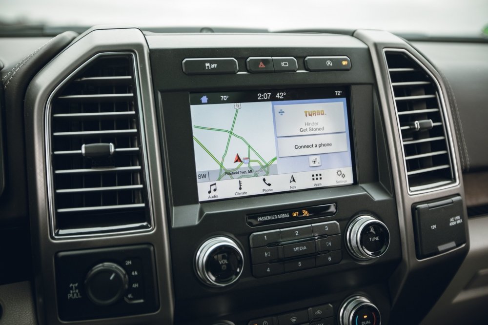 По данным Bloomberg, полученным из анонимного источника, большой фордовский пикап 2021 модельного года порадует покупателей большим горизонтально ориентированным экраном с диагональю не менее 12 дюймов, то есть точно не будет в этом плане уступать пикапу Ram, у которого, однако, топовый 12-дюймовый монитор установлен вертикально. Это значит, что центральная консоль Форда подвергнется серьёзной ревизии и воздуховоды будут перенесены (скорее всего, вниз), чтобы освободить место под «телевизор».