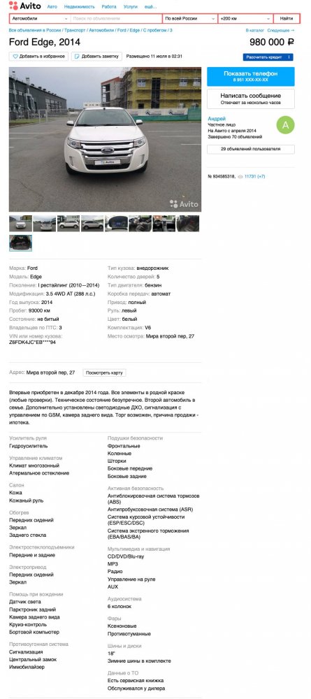 В общем, лучше сконцентрироваться на «дилерских» машинах, тем более что выбор на вторичном рынке и так крайне скуден: на момент написания материала в продаже было менее двух десятков автомобилей, что неудивительно, учитывая, что всего их было продано не более полутысячи. Тогда, в 2014 году, Edge тоже был покупкой неоднозначной. Новые кроссоверы упрекали за простецкую отделку интерьера, типичную для «американцев», но непростительную для нас, а также за невозможность выбрать ни мотор, ни даже комплектацию: к нам привезли только полноприводные машины с 3,5-литровым атмосферником и в единственном «промежуточном» варианте исполнения.