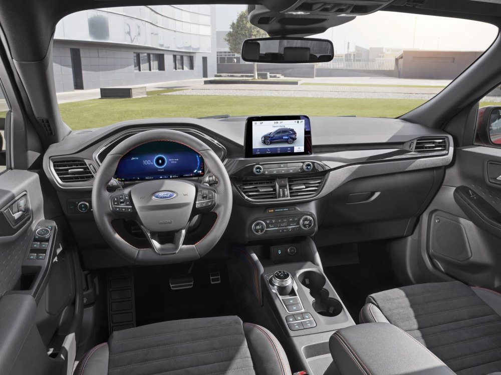 По сравнению с предшественником колёсная база выросла с 2690 до 2710 мм, благодаря чему на заднем сиденье Куги стало чуть просторнее. Объём багажника пока не назван, известно лишь, что его можно увеличить на 67 л, если подвинуть установленное на салазки заднее сиденье максимально вперёд. С места водителя новая Kuga почти полностью идентична Фокусу четвёртого поколения, и, в сущности, единственной «фишкой» кроссовера является виртуальный 12,3-дюймовый виртуальный щиток приборов, тогда как диагональ мультимедийного дисплея на центральной консоли составляет всего 8 дюймов. В дополнение к основному щитку предлагается выдвижное прозрачное стёклышко на козырьке, на которое с помощью проектора выводятся оперативные данные – например, скорость и навигационные подсказки.