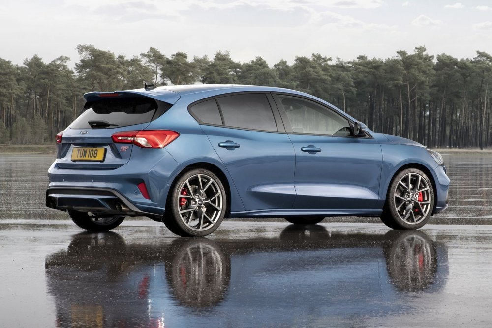 Время разгона до 100 км/ч? Увы, Ford не даёт точного значения, ограничившись застенчивой фразой «менее 6 с». Заметим, что Renault Megane R.S. (280 л.с.) набирает первую «сотню» за 5,8 с, а 300-сильная версия Trophy за 5,7 с, Volkswagen Golf GTI TCR (265 л.с.) – за 5,6 с, Hyundai i30 N (275 л.с.) – за 6,1 с, Honda Civic Type R (320 л.с.) – за 5,7 с. Вряд ли Focus ST станет лучшим в столь плотной группе переднеприводных конкурентов без роботизированной коробки, но удовольствие от вождения обещает быть на уровне. По сравнению с «гражданскими» Фокусами ходовая часть ST отличается более жёсткими пружинами, оригинальными поворотными кулаками, уменьшенным на 10 мм дорожным просветом, более «острым» рулевым управлением и мощными тормозами (диаметр передних дисков – 330 мм, задних – 303 мм). В комплекте с бензиновой версией идёт также самоблокирующийся дифференциал с электронным управлением от Borg Warner и адаптивные амортизаторы. Ездовая электроника имеет три предустановленных режима – Normal, Sport и Slippery/Wet (для езды по скользкому и влажному дорожному покрытию). Пакет Performance Pack предусматривает также более тонкие индивидуальные настройки для заездов по гоночному треку.