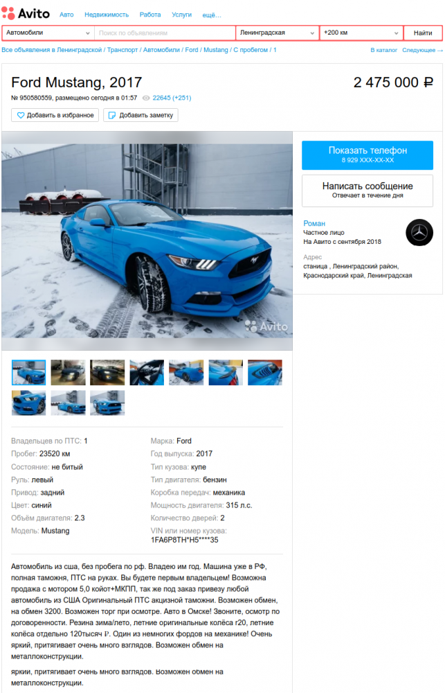 Причины очевидны: во-первых, стоимость машин 2018 года выпуска ощутимо превышает наш бюджет, а во-вторых, V8 на 5 литров увеличивает и изначальный ценник автомобиля в США, и размер таможенных пошлин. Одна только растаможка дорестайлингового Мустанга с таким мотором тянет на 1,3 миллиона рублей – а потому неудивительно, что сейчас в продаже есть всего 2 таких автомобиля, и стоят они более 4 миллионов рублей.