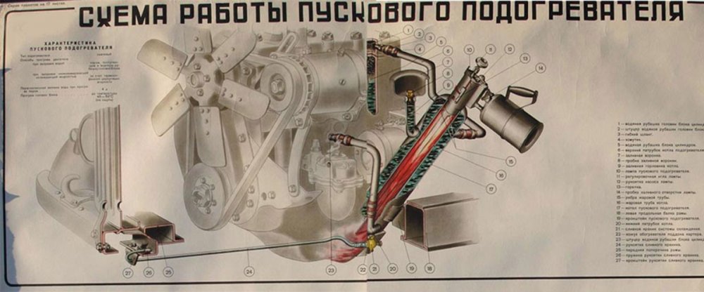 При работе подогревателя двигатель мог нагреться до 30-40 градусов, что сильно упрощало задачу водителю. Ведь не будем забывать о том, что пусковые свойства двигателей тех лет были далеки от современных, а даже несильный износ поршневой группы ухудшал их еще больше.