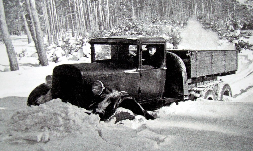 На заглавной фотографии — Зимние испытания трехосного грузовика ГАЗ-33 на полигоне в Кубинке. 1940 год
