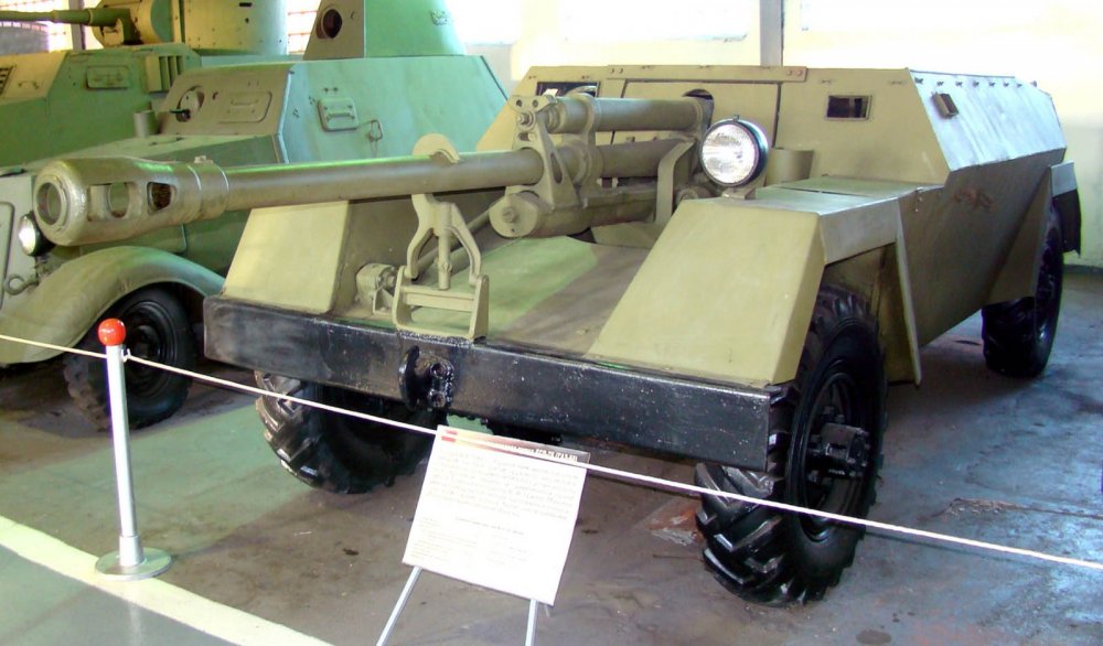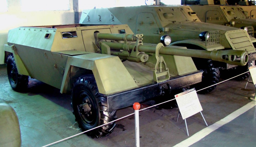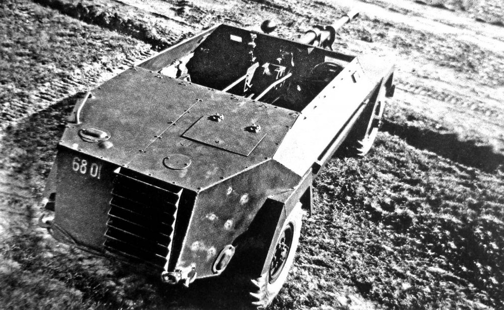 Комплектная машина была готова в мае 1944-го. Ее главной особенностью были передние ведущие и управляемые колеса, а также отключаемый задний привод. Трансмиссия включала механическую четырехступенчатую коробку передач, раздаточную коробку с демультипликатором, три карданных вала, расположенные внутри продольного тоннеля, и два неразрезных ведущих моста на полуэллиптических рессорах с гидроамортизаторами. В переднем боевом отсеке устанавливали дивизионную пушку ЗИС-3 и два пистолета-пулемета ППШ. Справа от нее находилось отделение водителя, слева — место командира-наводчика.