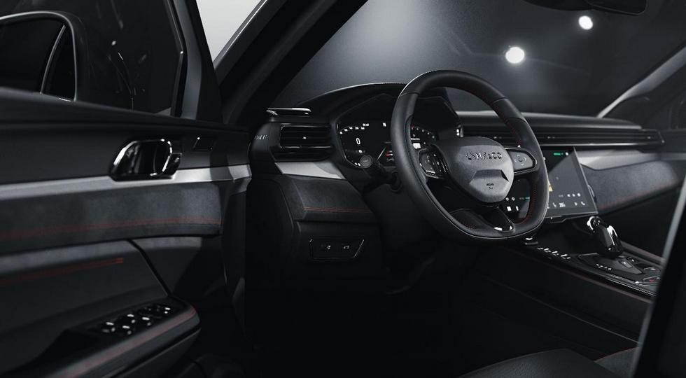 Салон у купеобразного кроссовера вышел оригинальным, тогда как остальные модели бренда внутри повторяют друг друга: тут новая передняя панель с выполненными в виде единой линии дефлекторами обдува, другие рулевое колесо (китайцы пишут, что с тачпадом) и карты дверей, спортивные кресла, обитые кожей наппа и замшей. Также Lynk & Co 05 получил новую мультимедийную систему с большим экраном, на котором отсутствуют физические кнопки. При этом ниже расположены два «кругляша», один из которых отвечает за «климат» (чем управляет второй – пока непонятно).