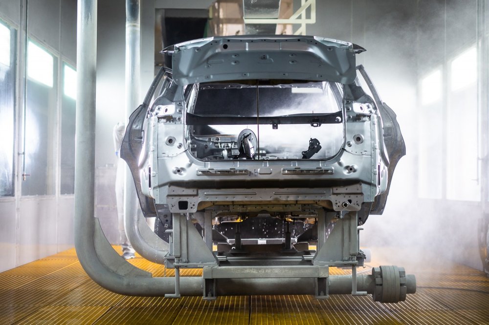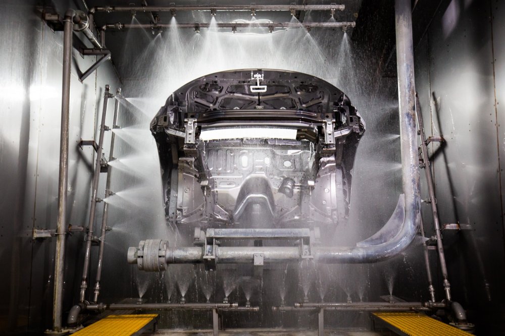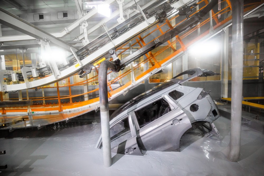 Сваренный кузов отправляется в цех окраски – там он обезжиривается, фосфатируется, проходит катафорезную антикоррозийную обработку, грунтуется и красится. Оцинковка кузовных панелей обещает достойную коррозионную стойкость, которой также способствует дополнительная обработка – помимо упомянутой выше катафорезной обработки это и покрытие днища защитной мастикой, и тщательная обработка швов. В это время в соседнем помещении красится и полируется пластик – бамперы, накладки и молдинги. Кстати, распространенное мнение о том, что бамперы слегка отличаются по цвету от кузова исключительно потому, что краска по-разному ложится на металл и пластик, не совсем верное. Дело в том, что и краски для них применяются разные: кузов окрашивается эмалью на водной основе, а для бамперов применяются сольвентные краски, которые колеруются отдельно.
