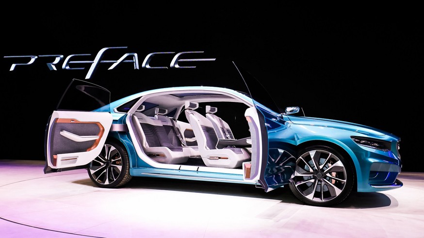 По сравнению с нынешними серийными моделями Geely, у седана Preface более крупная радиаторная решётка, которая «утоплена» в переднюю часть авто. Конечно, на новинке уже красуется обновлённый логотип, более строгий – его компания использует с 2019 года. Задние двери распахиваются против хода движения. Центральная стойка отсутствует, как и рамки у дверей. В салоне внимание привлекают шестиугольный руль и необычной формы кресла.